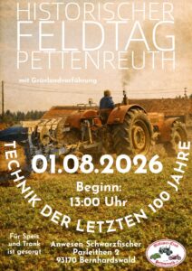 Feldtage Wir laden herzlich zu unserem Feldtag ein. Wir zeigen Brauchtumsfahrzeuge im Einsatz. + Zu Google Kalender hinzufügen + iCal / Outlook export Datum 01.Aug..2026 Uhrzeit 13:00 - 19:00 Veranstaltungsort Parleiten Parleiten 1, 93170 Bernhardswald Teile diese Veranstaltung